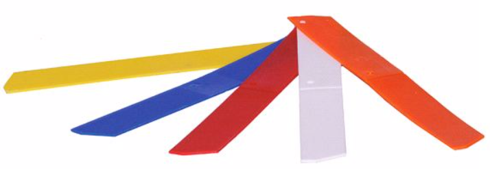 Sihtauslevy, taitettava. Helppo kiinnittää tukevasti paikoilleen nitomakoneella. Levyn keskiura helpottaa taittamista kulmaan. Valmistettu pakkasen kestävästä muovista. Sininen