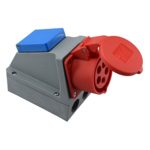 Kombirasia kytketty 16A. 5-napainen 16 A pistorasia sekä maadoitettu yksi vaiheinen 16 A pistorasia. Roiskevesitiivis.