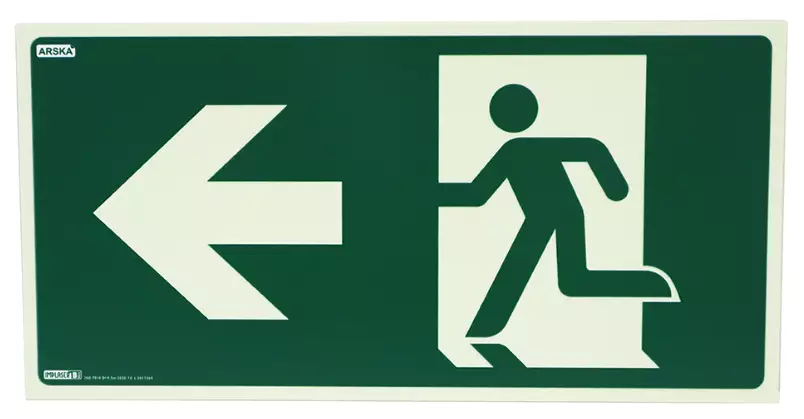 Jälkivalaiseva poistumistieopaste nuoli vasen.