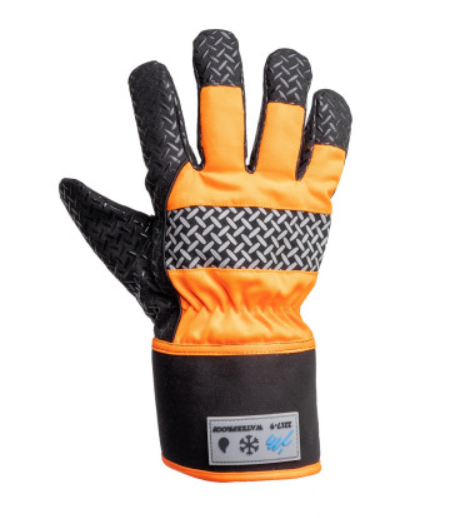 Keinonahkainen vedenpitävä suojakäsine, lämmiin fleece-vuori. Paksu kämmen materiaali, jossa pitoa parantavat silikonikuviot. 100% vedenpitävä kalvokäsine.