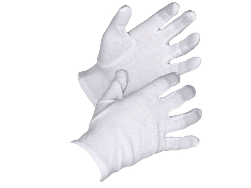 Ohut puuvilla aluskäsine. Istutettu peukalo ja sormissa kiilapalat. Pakkaus: 12pr/nippu
